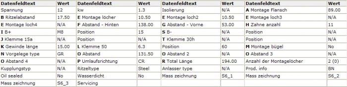 Volt 12, Kw 1.3, Anzahl der Zähne 9,11, Umlaufsrichtung CR, Getriebetyp GR, Montageflansch 89.00, B+ M8, Ritzelabs. 17.50,
