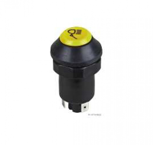 Druckknopfschalter gelb Arbeitsscheinwerfer 12/24V Ein/Aus Flachsteckanschluss 4x6,3mm Einbau 30mm 70490175