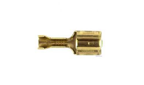 Steckerausführung Flachsteckhülse, blank, Messing, von 2,5 mm², bis 6 mm², Steckbreite 6,3 mm, Steckhöhe 0,8 mm, Länge 19,2 mm, Form vorgeformt, mit Rastpunkten,