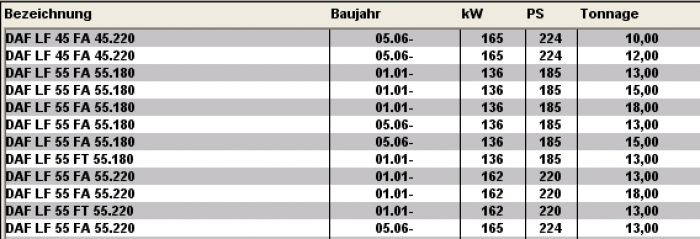 DAF - CF 75 - FAG 75...   01.01 -     183 - 265     249 - 360       9200   Pritsche/Fah
