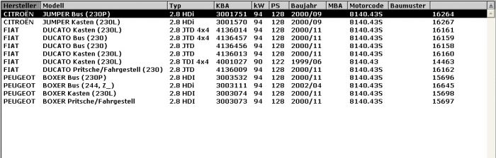 Für Ihr Fahrzeug schauen Sie in die Liste unten