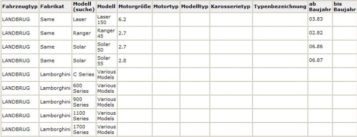 Alfa Romeo, Fiat, Iveco, Lamborghini, Seat, Same. |