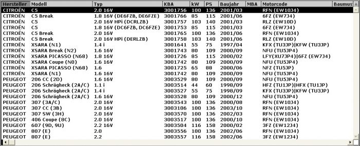 Für Ihr Fahrzeug schauen Sie in die Liste unten